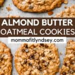 Chewy almond butter oatmeal cookies that are quick and easy to bake! Full of hearty oats, gooey chocolate chips and salty almond butter, these will become your family's sweet snack or dessert! Gluten free and dairy free and baked in under 30 minutes!